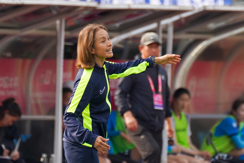 时任上海女足主教练高仓麻子在场边指导 新华社发(杜懿摄)